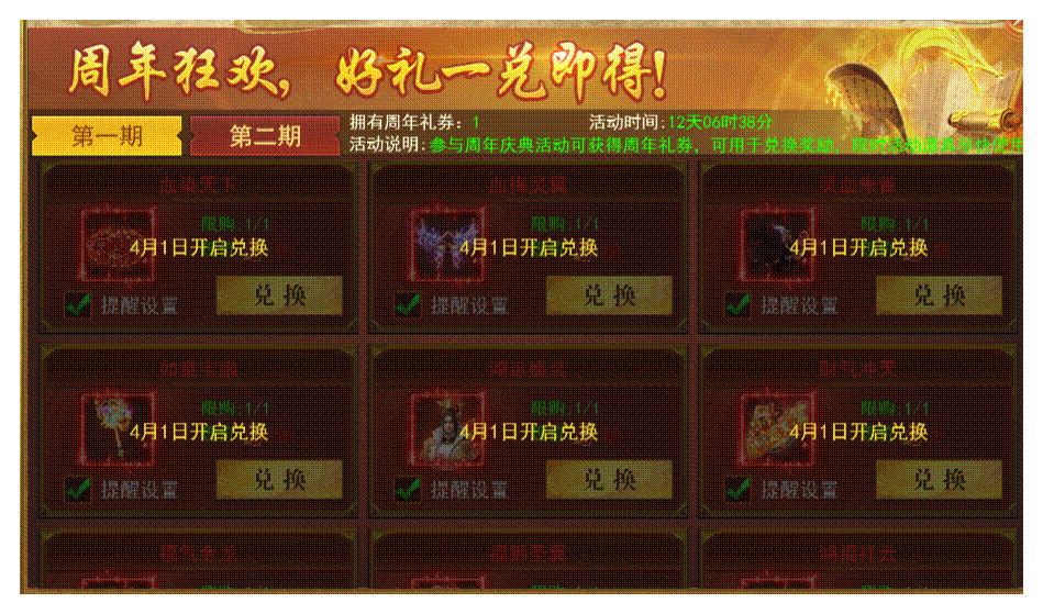 四、周年兑换(3月29日-4月10日)